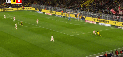 第90+7分钟,补时绝杀,拜尔后点低射破门,多特1-0