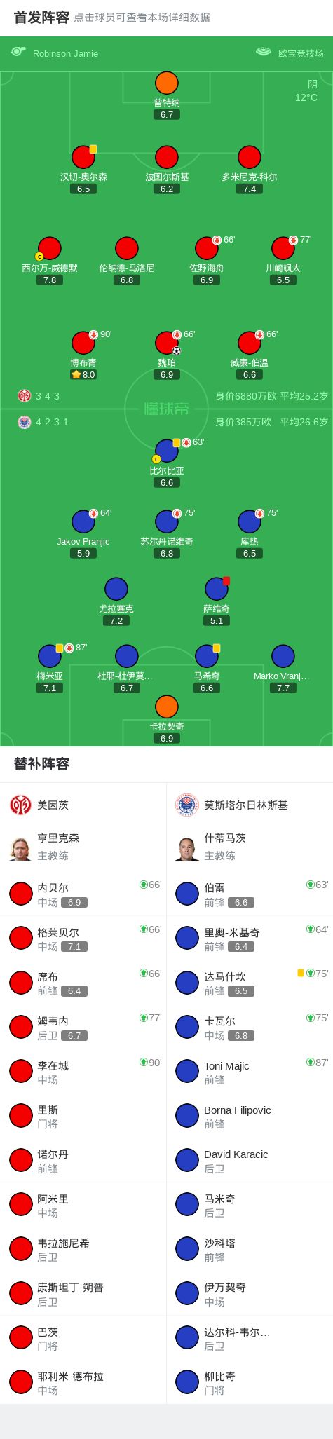 美因茨1-0莫斯塔尔日林斯基,魏珀一剑封喉